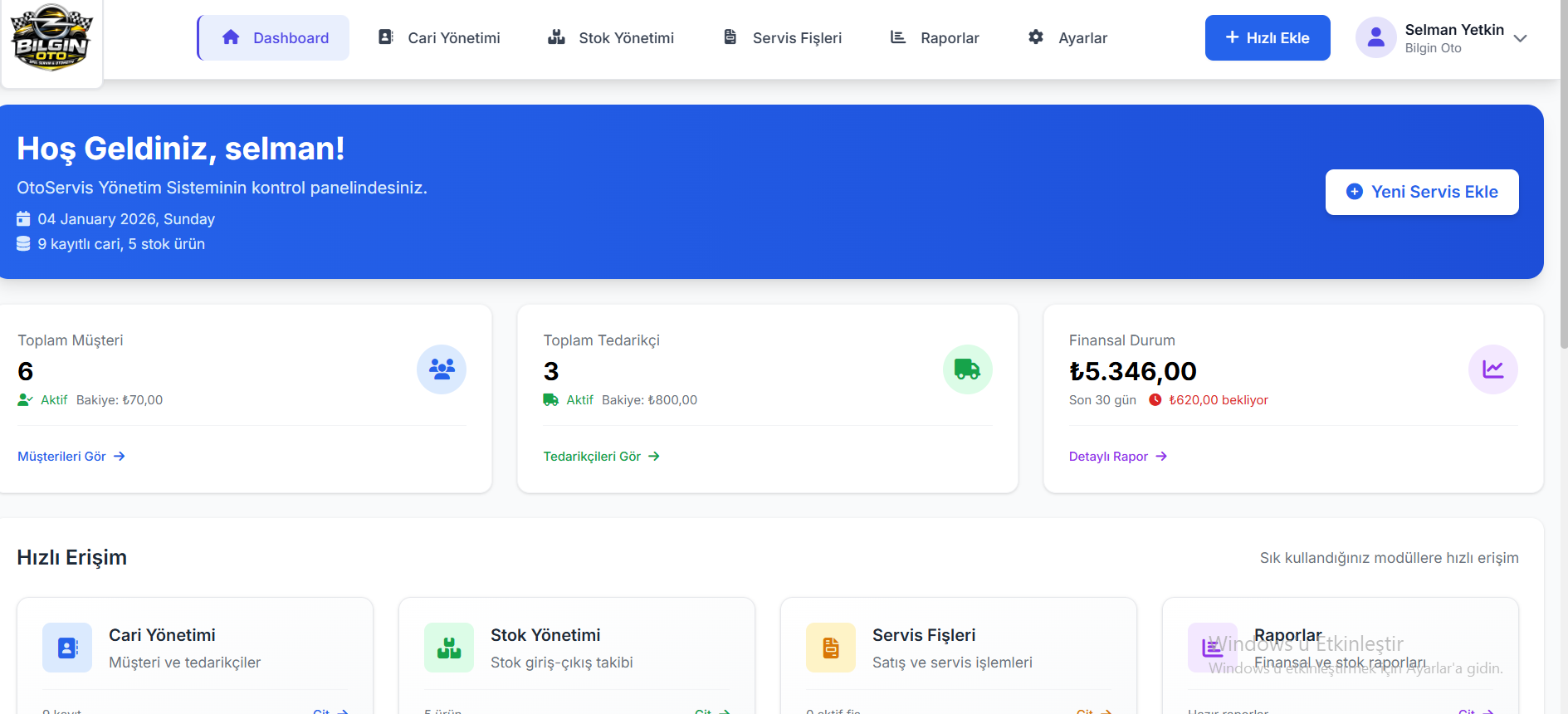 Oto Servis Otomasyon Sistemi - Proje Detayları
